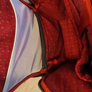 Well patted backpack for roaming the day. Slanted figure gives it a more sleek look and less bulk. Can hold a 15 inch laptop. And has slots for pens and your personal items. Both sides has waterbottle slots that are very deep. As well the water bottle slots are adjustable with a clip. About 20inches in height, 7 inches in length and 10 inches in width In great condition.