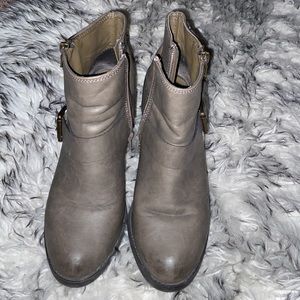 Short heel for comfort and style. Ankle boots with 3 buckle design on both sides.