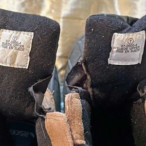 DETAILS: Small elastic triangle on ea. boot at outer ankle. Warm boots that provide a good footing in winter.