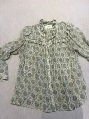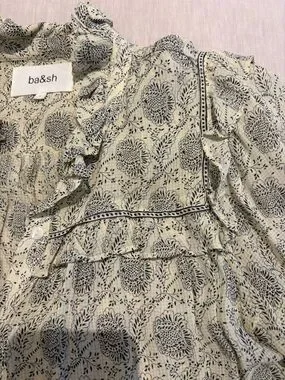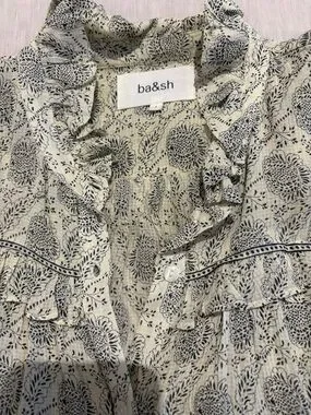BORA ba&sh cream Paisley Ruffle Button-Up Blouse