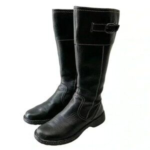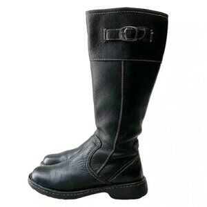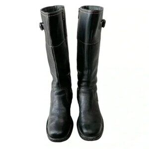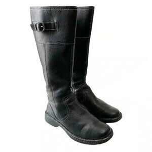 BORN Leather Riding Boots Tall Knee High Equestrian Buckle Black Size 6.5 EU37