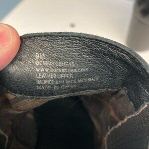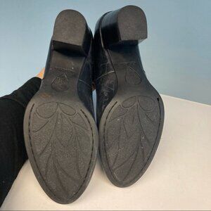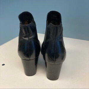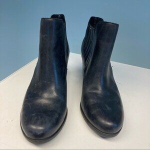 BORN Dark Navy Blue Stacked Heel Western Vibe 2.5” Heel Leather Booties Sz 9. Beautiful style. Dress up or down.