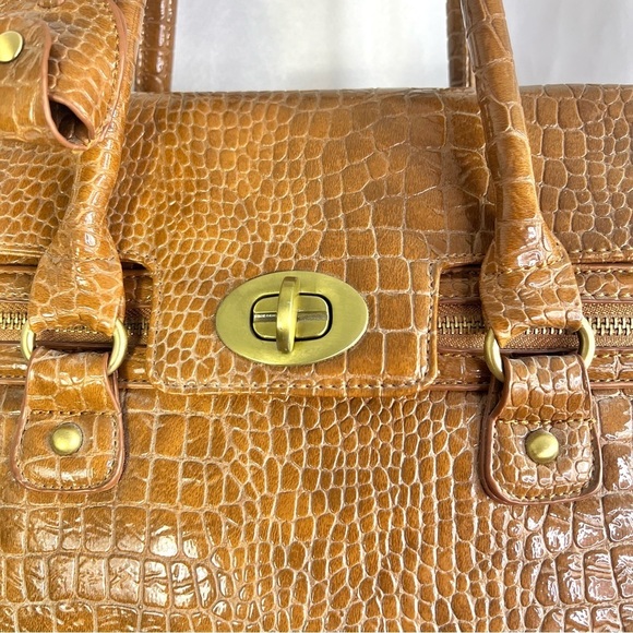 BOSALINA BROWN CROCODILE EMBOSSED BAG FAUX LEATHER HANDBAG GOLD HARDWARE