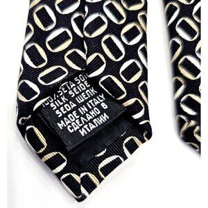 BOSS Hugo Boss Men's 100% Silk Tie Black Geometric Classic Made in Italy 58x3.5