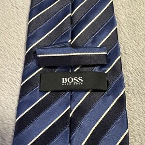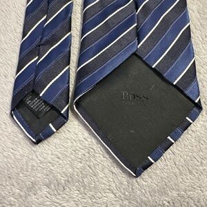 BOSS Hugo Boss Silk Men's Tie Necktie Blue Black White Stripe Made in Italy