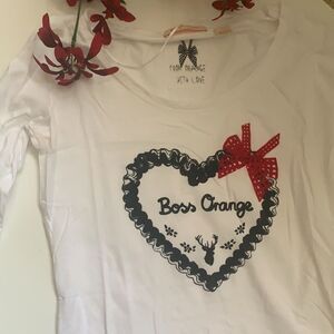 White cotton top by Boss Orange with heart and bow detail from popular special edition collection. Classy and trendy, excellent condition.