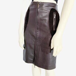 BOSS by HUGO BOSS Brown Leather and Suede Midi Skirt / size Small-Medium