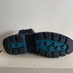 BOSS navy suede Chelsea boots, with chunky sole.Pull on style with elastic insets for ease .Rounded toe, soft suede for comfort.Size 44 Barely worn, like new.