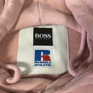 BOSS Russell Athletic Hoodie Mens Medium Pink Pullover Sweatshirt Boss Athletic Logo