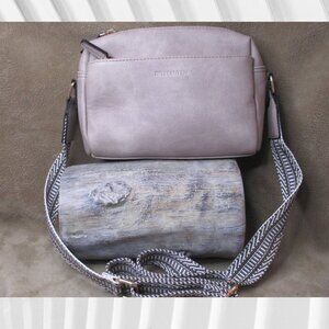 This crossbody purse includes three zipper sections. Internally, it includes one zip pocket and one slip pocket.