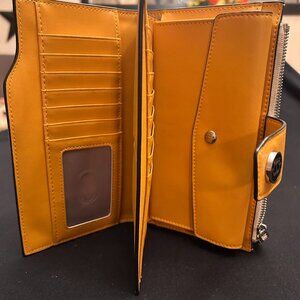 Excellent Condition. BOSTANTEN Womens Wallet Genuine Leather Wallets Large Capacity Cash Cluth Purses with Zipper Pocket Yellow.
