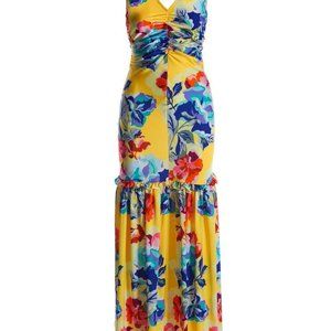 BRAND NEW!!! Never Worn. A colorful, mood-boosting floral print gives this maxi dress its tropical, dreamy allure. Add ruffles and ruching to enhance the figure, and the look becomes even more captivating. Size 12