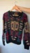 DESCRIPTION: Kick it old school in this vintage 90’s Vibrant knit sweater with geometric patterns! Wool hand knit Pullover Sweater with a crew neck featuring black, red, green, purple & beige colors. Ribbed cuffs and hem.
