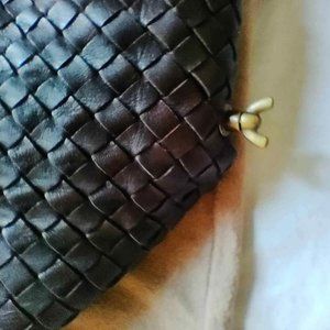 This Boston bag features a woven leather body, rolled leather handles, a top zip closure and an interior zip slip pocket.
