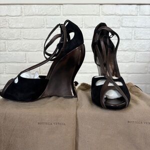UP FOR SALE IS A PAIR OF "BOTTEGA VENETA PELLA S. GOMMA 4.75" WEDGES". RETAIL AT $970 PLUS TAX. EU SIZE 41 / US SIZE 10 - purchased directly from the shop in Italy in 2012.