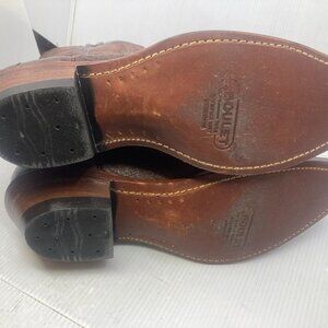 New , only tried by our customers in our store, but a light darker spot on one boot ( on toe cap)....Bottom made in ostrich leather, and shaft is in cow leather....Marked 11 E, US mens size....Total height is 14 1/2", heels are 2"....Insole measure 11 1/4", and outsole measure 12 3/4" x 4 1/8".....retails price is around 500$ Canadian....Made in Québec, Canada, by Boulet boots.