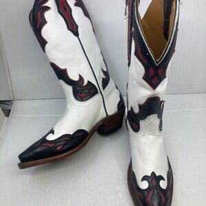 BOULET western cowboy NEW never worn white-red-black womens boots 6 1/2 C