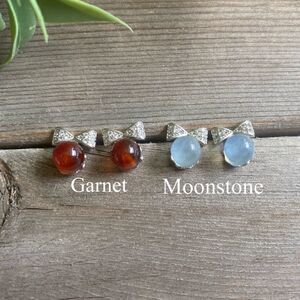 These adorable earrings feature super mini crystal spheres attached to little bows!