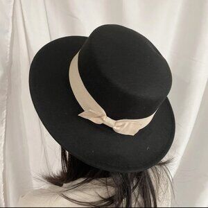 BOW Vintage Wide Brim Felt Wool Bowler Hats Floppy Cloche Fedora Cap beige