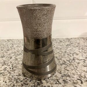 Add a touch of elegance to your home decor with this Bowring Silver Candle Holder Spiral. This used candle holder features a unique spiral design that will instantly elevate any space. Made by the trusted brand Bowring, this one-size candle holder is perfect for holding your favorite candles and creating a cozy ambiance in any room. Whether you're looking to create a romantic atmosphere for a special occasion or simply want to add a stylish accent to your living room, this candle holder is a versatile and timeless piece. Don't miss out on the opportunity to bring a touch of sophistication to your home with this stunning Bowring Silver Candle Holder Spiral.