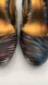 Chic heels with a bold geometric design. Features black, blue, and brown hues. Ideal for elevating any look.