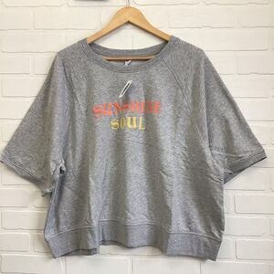 BOXY sweatshirt Retro crop Short sleeve soft Old Navy grey graphic sunshine soul