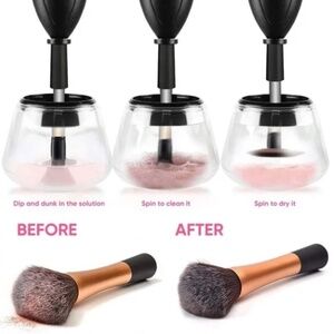 Designed with an easy-to-use electric spinner handle, it comes with a clear cleaning bowl and 8 silicone collars to fit a variety of brush sizes. Perfect for both face and eye brushes, this cleaner ensures a deep clean and quick dry—leaving your brushes soft, spotless, and ready for your next makeup application.