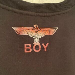 Authentic BOY LONDON sweatshirt featuring the brand’s iconic eagle motif and oversized vertical “BOY LONDON” lettering across the front.