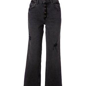 These five-pocket jeans are designed with a high-rise waist, distressed detail and a wide-leg silhouette. Crafted in comfort stretch denim, the jeans are finished with a button fly closure and raw hem detail. These upcycled jeans include OCS certified organic cotton and tencel™ lyocell, a natural raw material from eucalyptus trees that is responsibly produced to minimize environmental impact, reducing its carbon footprint and water usage.