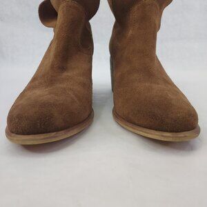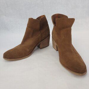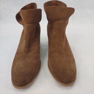 BP Ankle Bootie Women's 8 Brown Suede Slip On Notched Flip Top Block Heel Boot