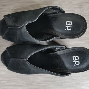 BP. Block Heel Peep-Toe Mules, Black Suede, Womens Size 5.5 M