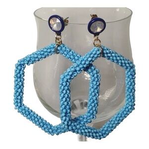 New! bp Blue Beaded Hexagon Dangling Earrings