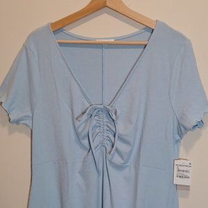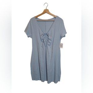 BP. Blue Tie Front Lettuce Edge Rib Dress