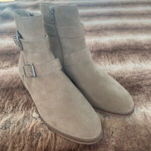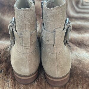 Minor flaws to stitching (double stitches, loose threads). Scuffs/scratches to soles, heels and suede. Faint marks and scuffs throughout. Areas where the suede has flattened or is rough/hairy.