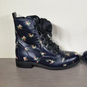 BP Floral Combat Boots with Ribbon Laces, Navy, Womens Size 6.5
