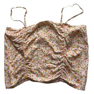 Cute and summery lightweight crop top with adjustable straps. Shirred back panel for perfect fit. 100% rayon.