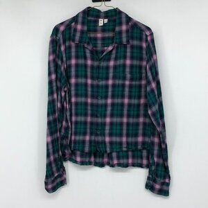 BP Green and pink plaid button down flannel shirt