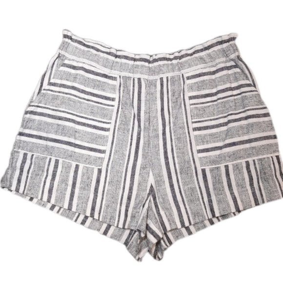BP Linen Baja Shorts Womens Size Small Gray High Waist Pull On Chino Striped