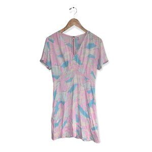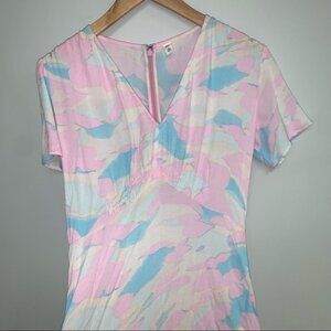 BP. Nordstrom Pastel Short Sleeve Crepe Dress Flowy Pink White Blue Size Small