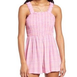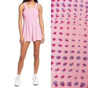 BP Romper Playsuit 100% Rayon Polka-dot Shirred Smocked Ruffles Fluttery NWOT