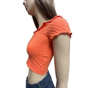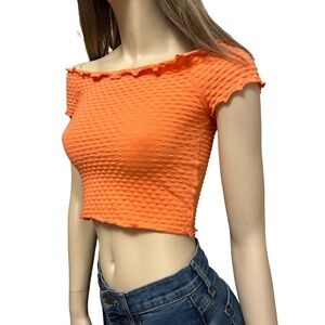 BP. Stretch Knit Top Cotton Shirt Crop Off or On Shoulder Peach Orange NWOT