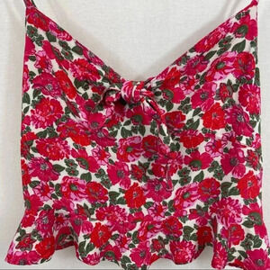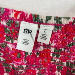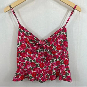 Bright and summery, a flowy peplum floral cami from BP. Adjustable straps, tie front, smocked back and flowy peplum hem. 100% viscose.