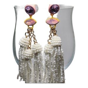 BP White Beaded Dangling Earrings