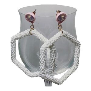 BP White Beaded Hexagon Hoop Earrings