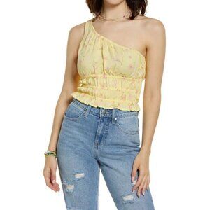 BP Womens Yellow Floral One Shoulder Bnwot Crop Top "Sophie" Nordstrom