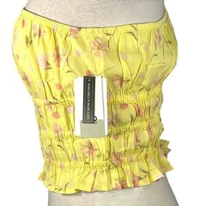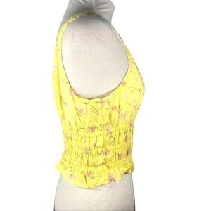 BP crop top one shoulder puckered shirred waist smocked yellow lemonade Sophie florals size S