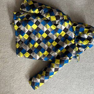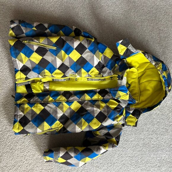 Get ready to hit the slopes with this BPC ski jacket, perfect for keeping your little one warm and stylish. This jacket is in good condition, ready for another season of snowy adventures. This jacket features a vibrant, checkered pattern with a bright yellow interior, ensuring your child stands out on the hill.