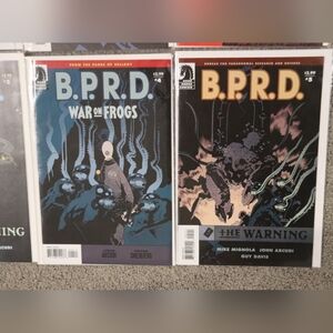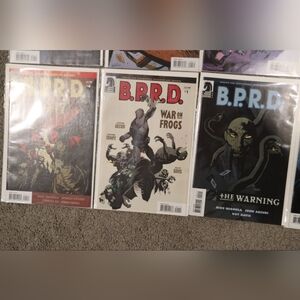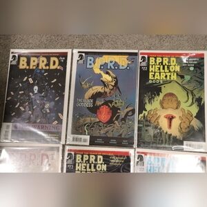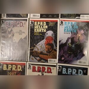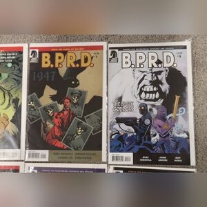 Collection of B.P.R.D. comic books with various cover designs. Features vibrant artwork and intriguing themes.