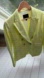 Beautiful Linen/Cotton blazer in a yellow/lime hue depending on the light-as you can see in photos. Single button closure inside. Double breasted. Pockets are still sewn up-like new. 5 button detail on sleeve. Lined. Very cute for spring and summer!