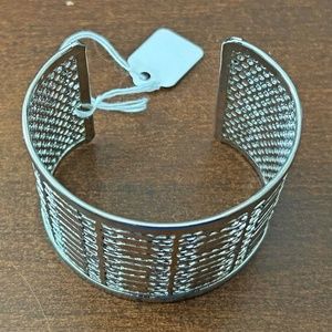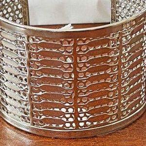 BRACELET, SHINY STEEL WITH LATTICE PATTERN, 2 ½ INCHES WIDE, TAG ON